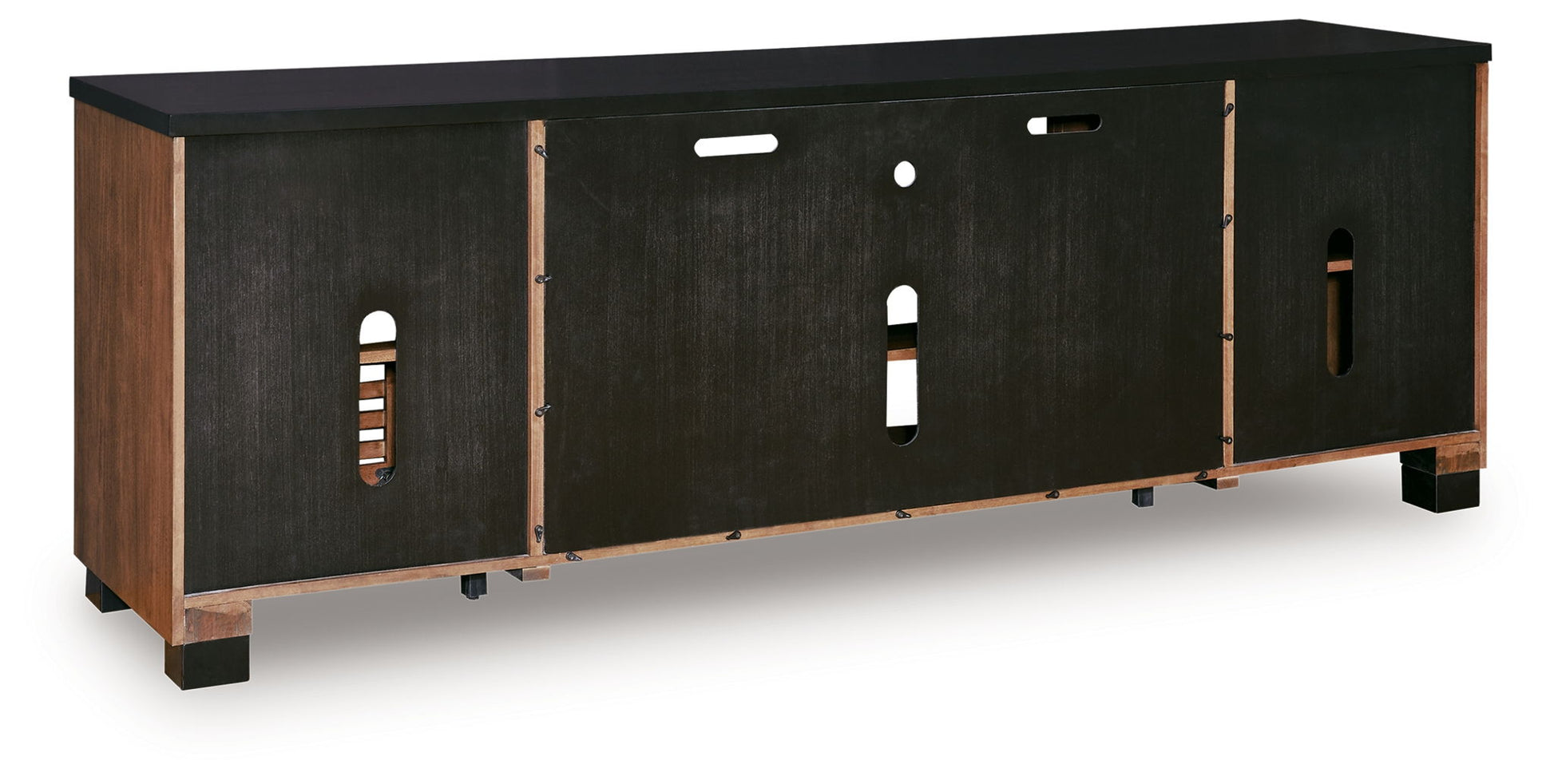Kallari - XL TV Stand With Fireplace Option - Warm Brown / Black