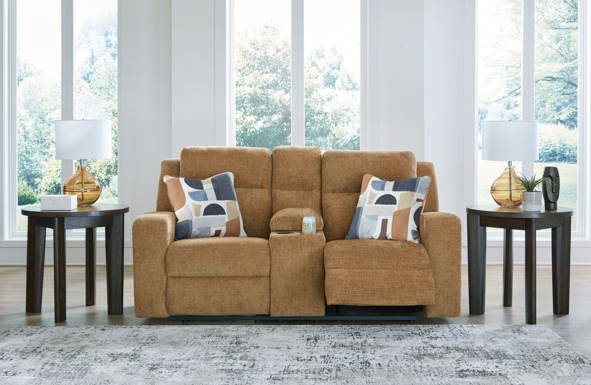 Kanlow - Dbl Reclining Loveseat With Console - Fabric - Honey