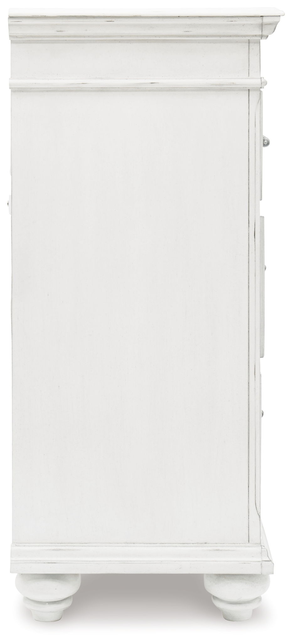 Give your retreat vintage charm and valuable drawer storage with this dresser. In a beautifully distressed finish, you'll love putting it all away in casual style. Seven full-sized drawers and two accessory top drawers will easily accommodate your needs. Generously scaled moulding from top to bottom, along with bun feet and drawer handles with a transitional aesthetic, give this dresser character—evoking the feel of a quaint cottage escape.