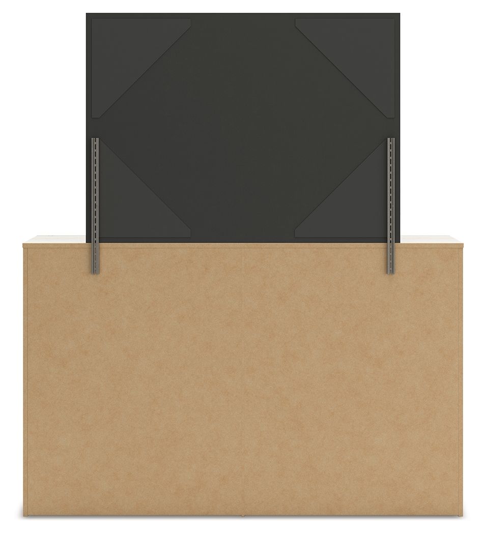 A fresh take on country living, this dresser and mirror set strikes the perfect balance between farmhouse and contemporary. Its rustic white finish and replicated reclaimed oak grain merge effortlessly with the clean-lined look we love today. Spacious drawers help you keep clothes organized and put clutter in its place. You’ll love how this set's simple design transforms your bedroom into a harmonious haven.